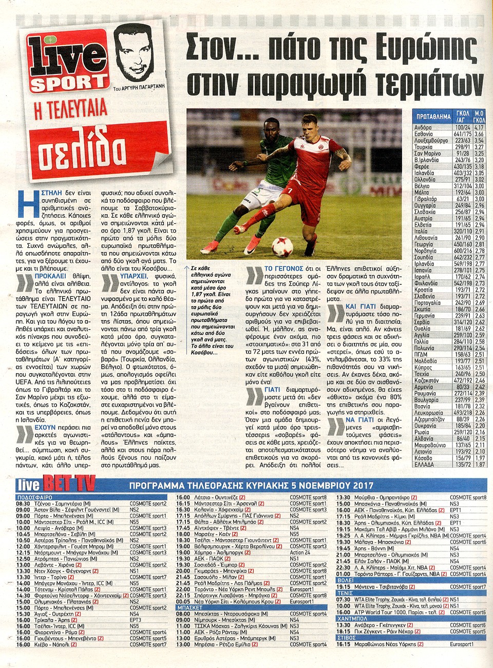 LIVE SPORT - 5 Νοεμβρίου 2017