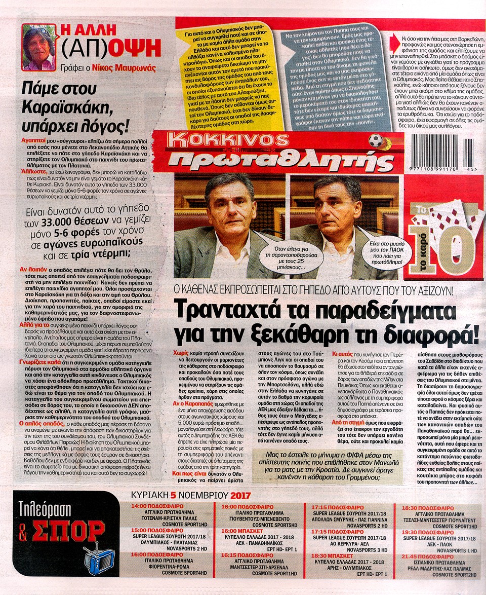 ΠΡΩΤΑΘΛΗΤΗΣ - 5 Νοεμβρίου 2017
