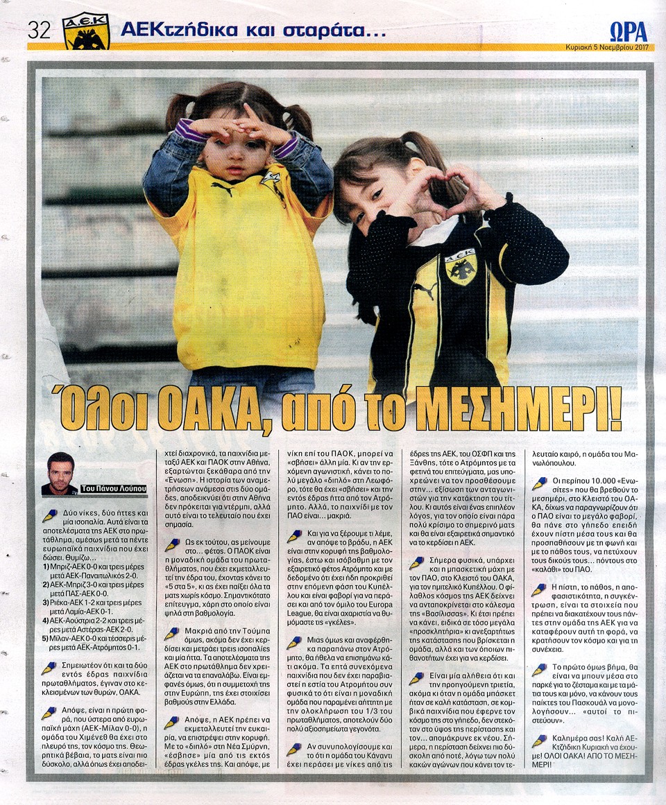 ΑΘΛΗΤΙΚΗ ΩΡΑ ΤΩΝ ΣΠΟΡ - 5 Νοεμβρίου 2017