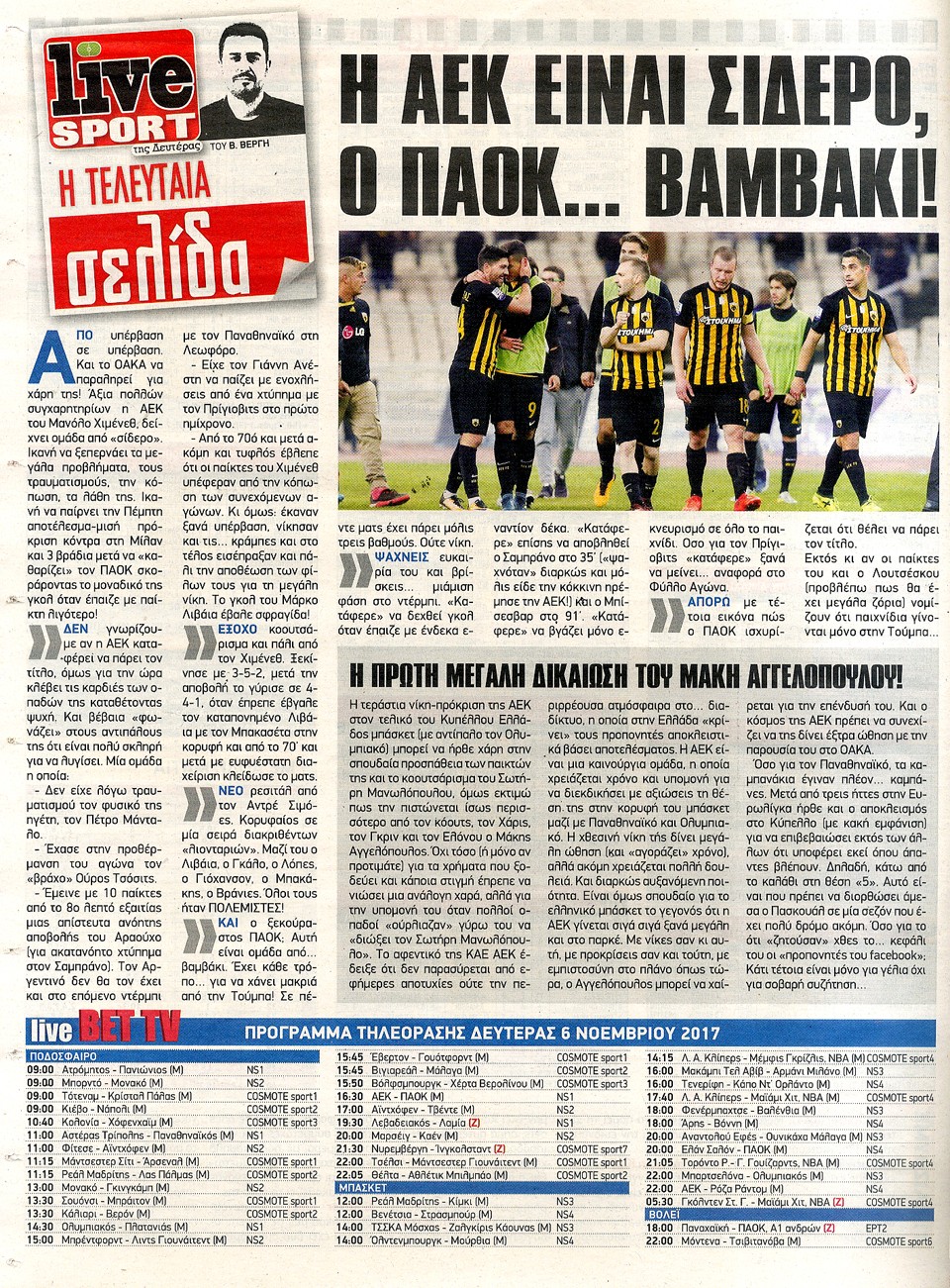 LIVE SPORT - 6 Νοεμβρίου 2017