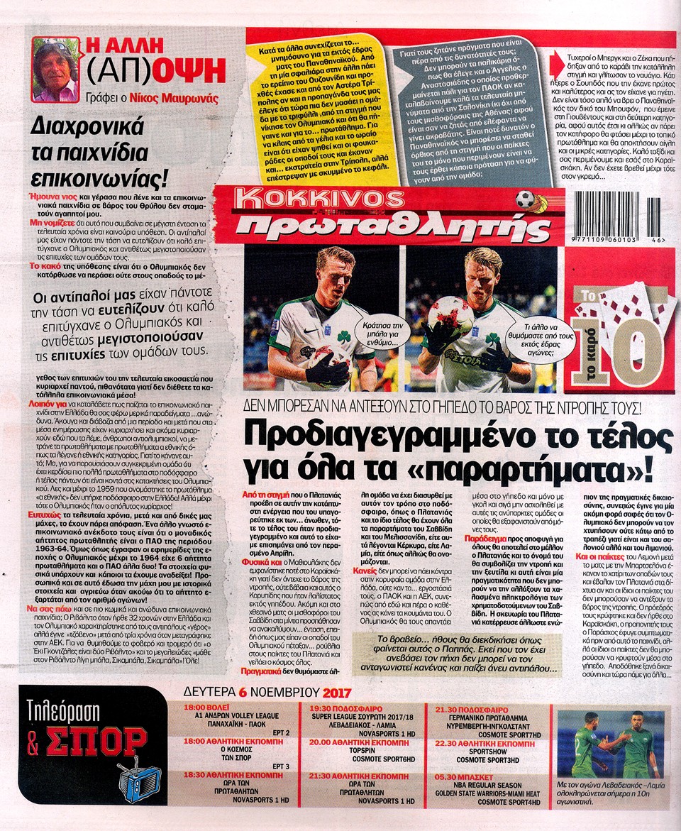 ΠΡΩΤΑΘΛΗΤΗΣ - 6 Νοεμβρίου 2017