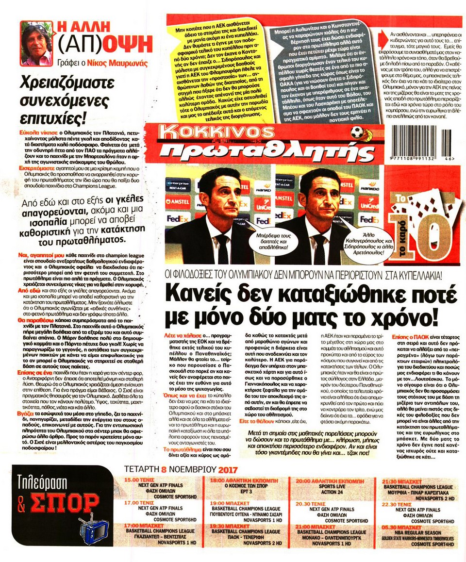ΠΡΩΤΑΘΛΗΤΗΣ - 8 Νοεμβρίου 2017