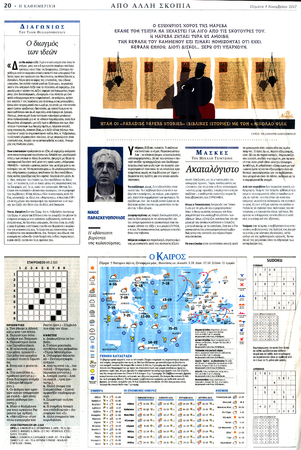 ΚΑΘΗΜΕΡΙΝΗ - 9 Νοεμβρίου 2017