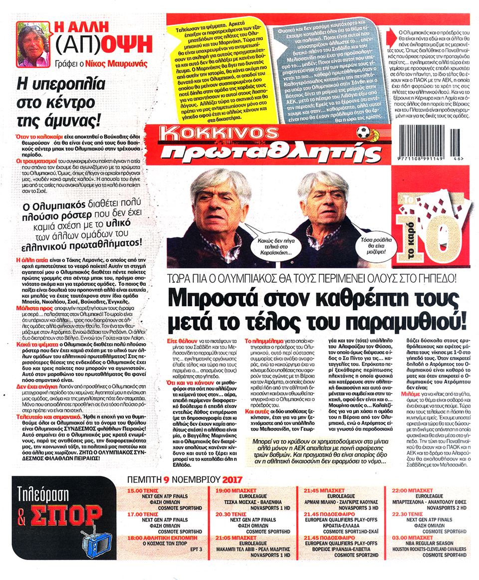 ΠΡΩΤΑΘΛΗΤΗΣ - 9 Νοεμβρίου 2017