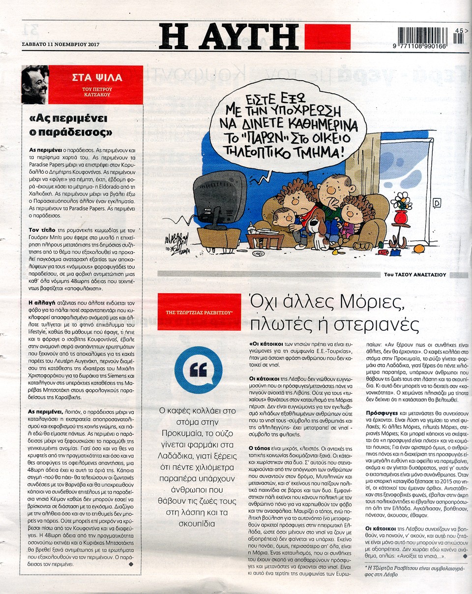 Η ΑΥΓΗ - 11 Νοεμβρίου 2017