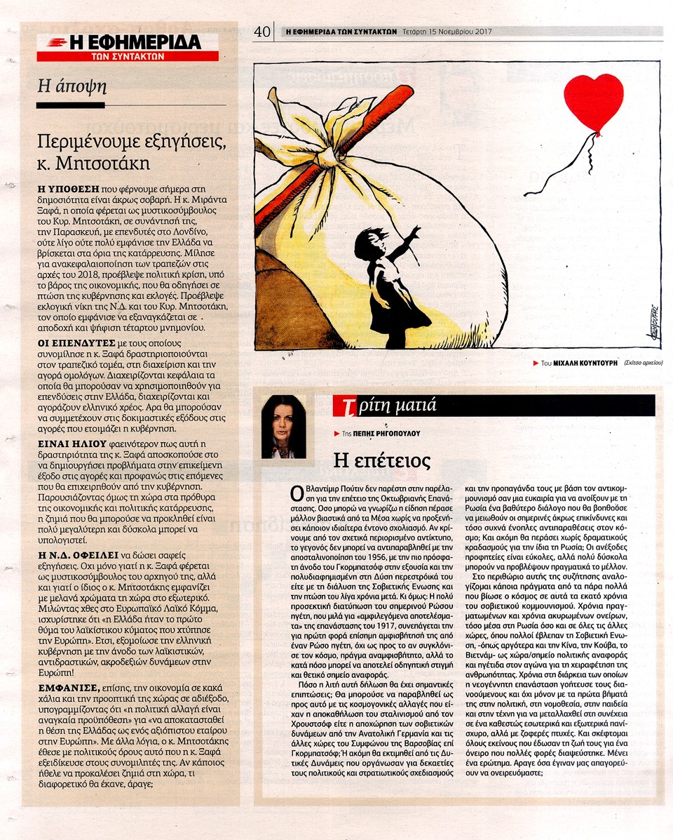 Η ΕΦΗΜΕΡΙΔΑ ΤΩΝ ΣΥΝΤΑΚΤΩΝ - 15 Νοεμβρίου 2017
