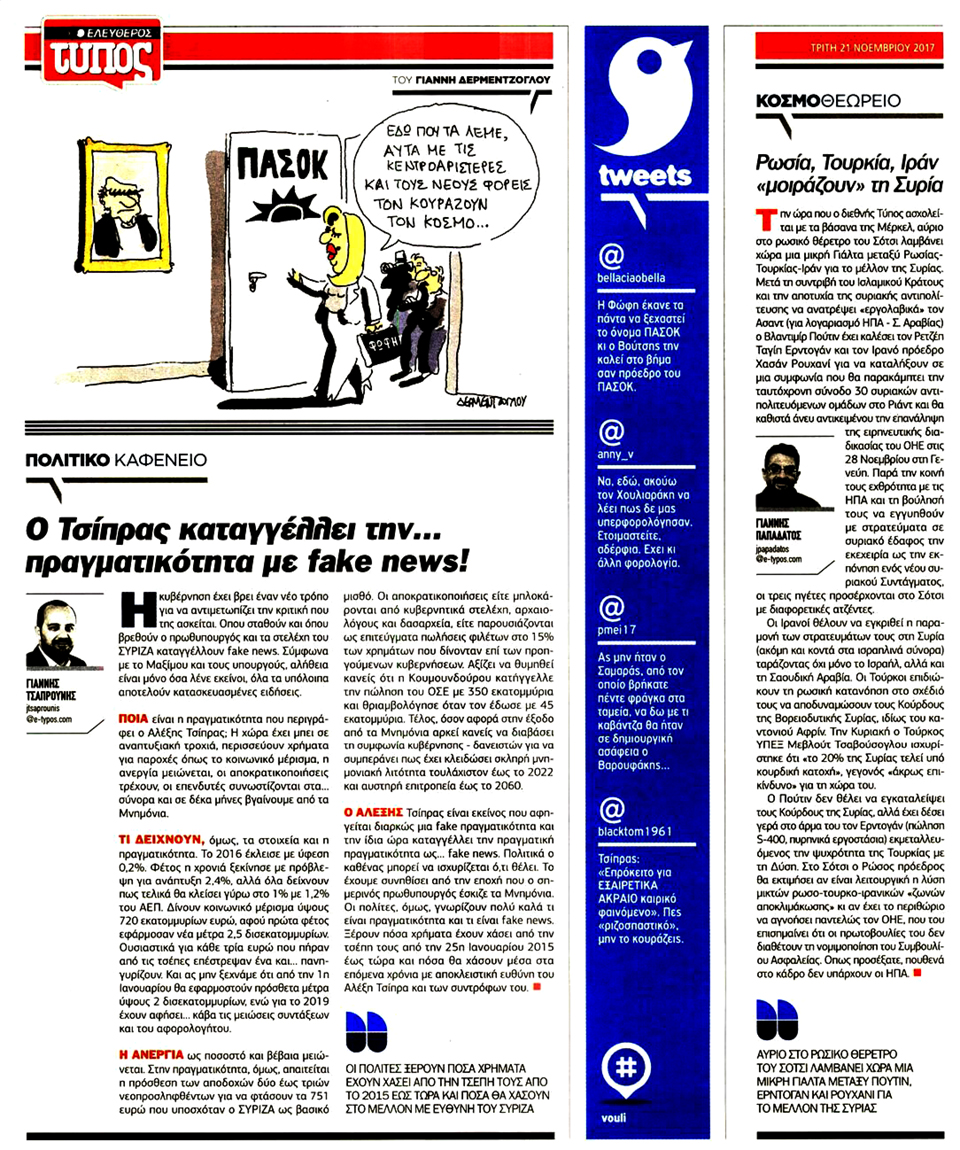 ΕΛΕΥΘΕΡΟΣ ΤΥΠΟΣ - 21 Νοεμβρίου 2017
