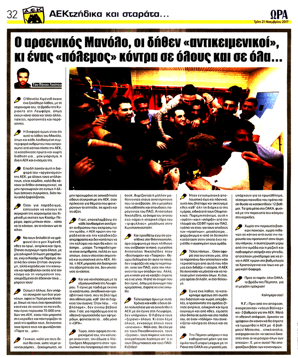 ΑΘΛΗΤΙΚΗ ΩΡΑ ΤΩΝ ΣΠΟΡ - 21 Νοεμβρίου 2017