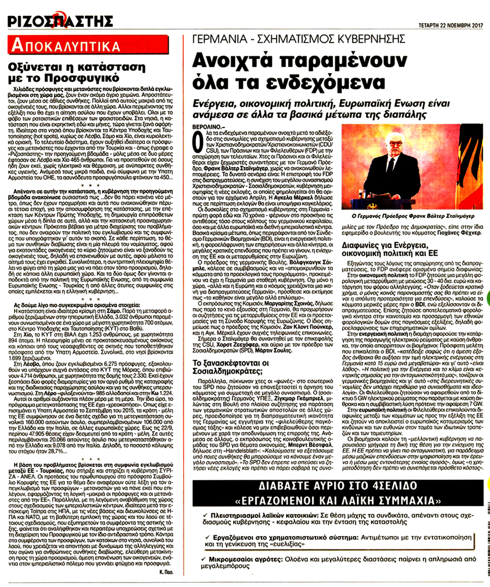 ΡΙΖΟΣΠΑΣΤΗΣ - 22 Νοεμβρίου 2017