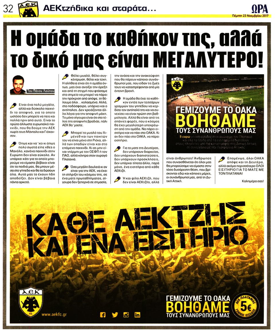 ΑΘΛΗΤΙΚΗ ΩΡΑ ΤΩΝ ΣΠΟΡ - 23 Νοεμβρίου 2017