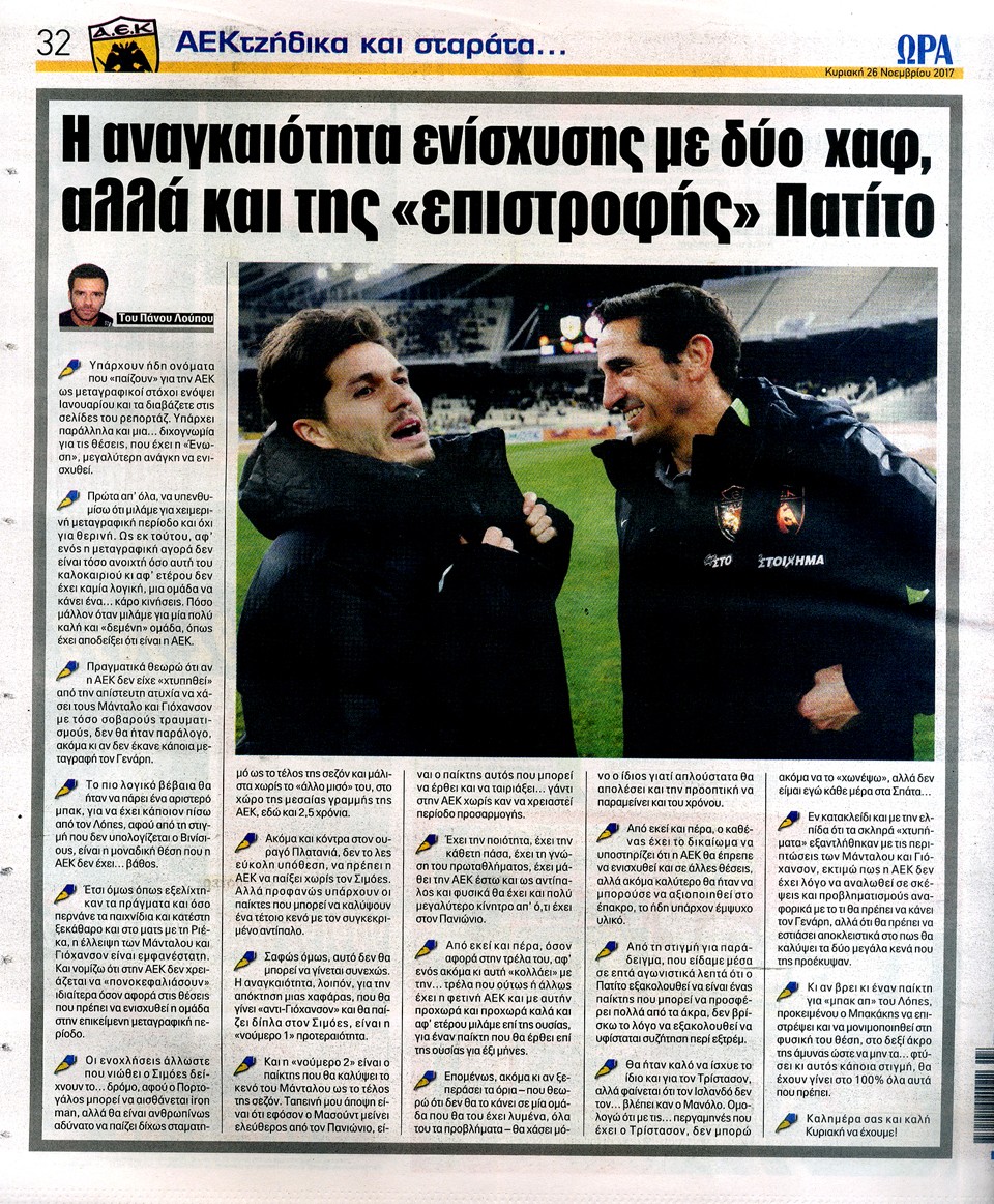 ΑΘΛΗΤΙΚΗ ΩΡΑ ΤΩΝ ΣΠΟΡ - 26 Νοεμβρίου 2017