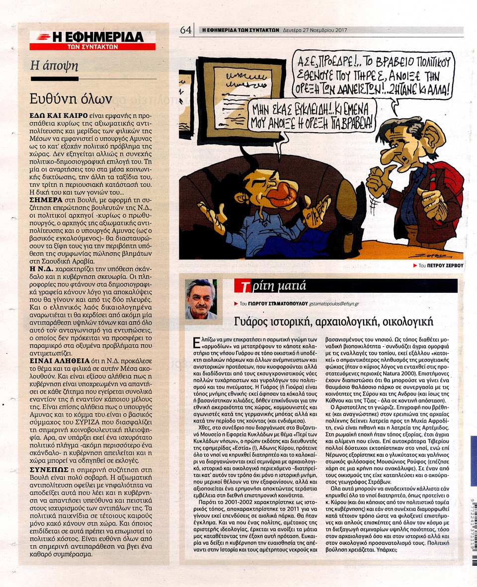 Η ΕΦΗΜΕΡΙΔΑ ΤΩΝ ΣΥΝΤΑΚΤΩΝ - 27 Νοεμβρίου 2017