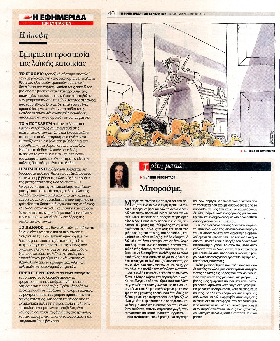 Η ΕΦΗΜΕΡΙΔΑ ΤΩΝ ΣΥΝΤΑΚΤΩΝ - 29 Νοεμβρίου 2017