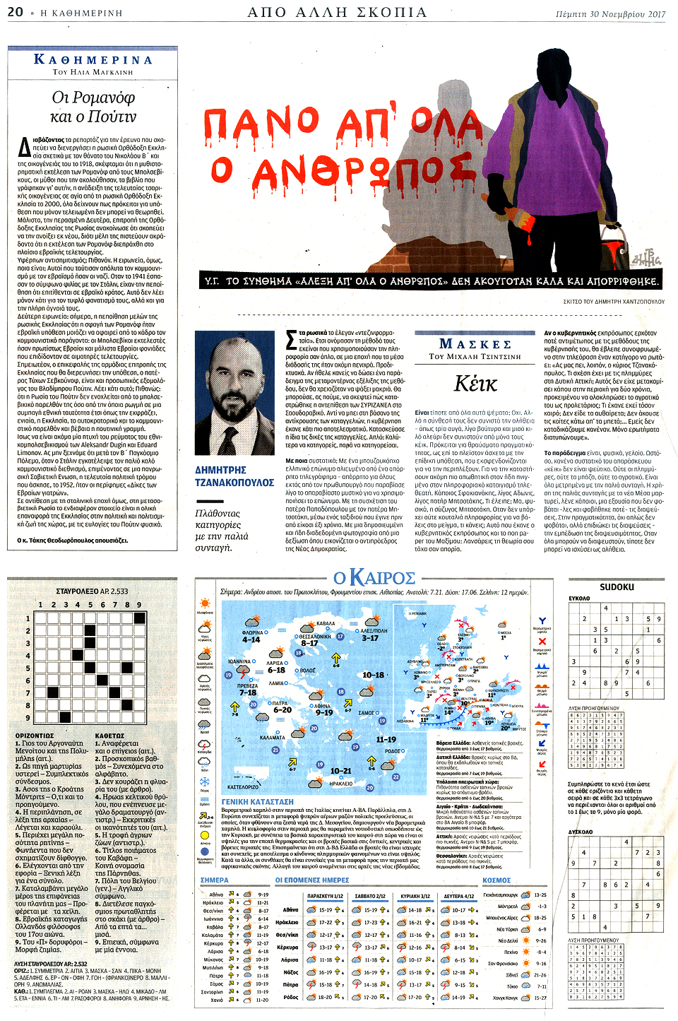 ΚΑΘΗΜΕΡΙΝΗ - 30 Νοεμβρίου 2017