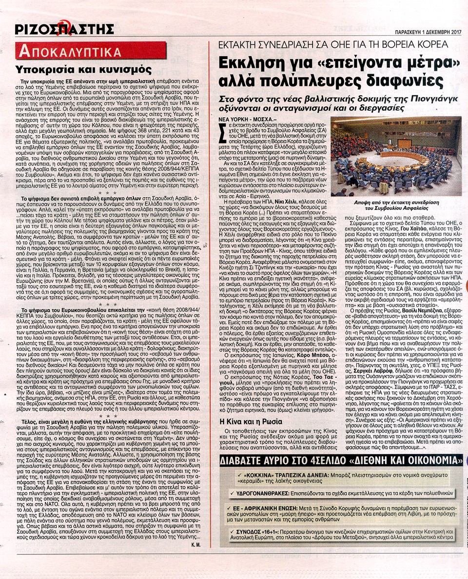 ΡΙΖΟΣΠΑΣΤΗΣ - 1 Δεκεμβρίου 2017