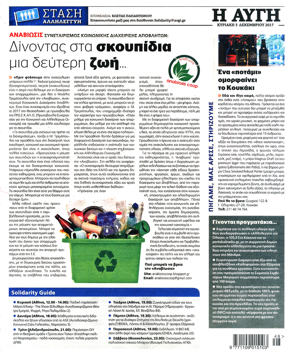 Η ΑΥΓΗ ΤΗΣ ΚΥΡΙΑΚΗΣ - 3 Δεκεμβρίου 2017