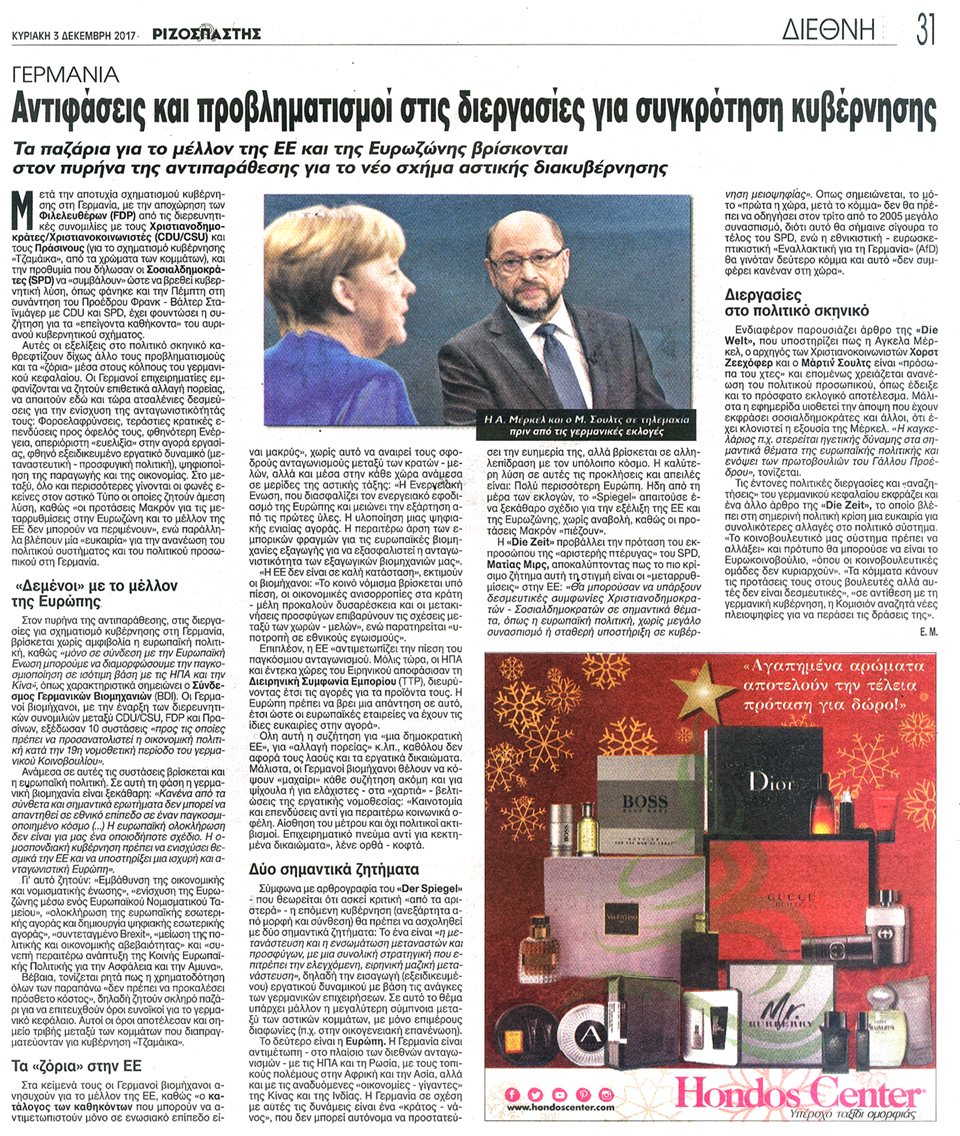 ΡΙΖΟΣΠΑΣΤΗΣ ΤΗΣ ΚΥΡΙΑΚΗΣ - 3 Δεκεμβρίου 2017
