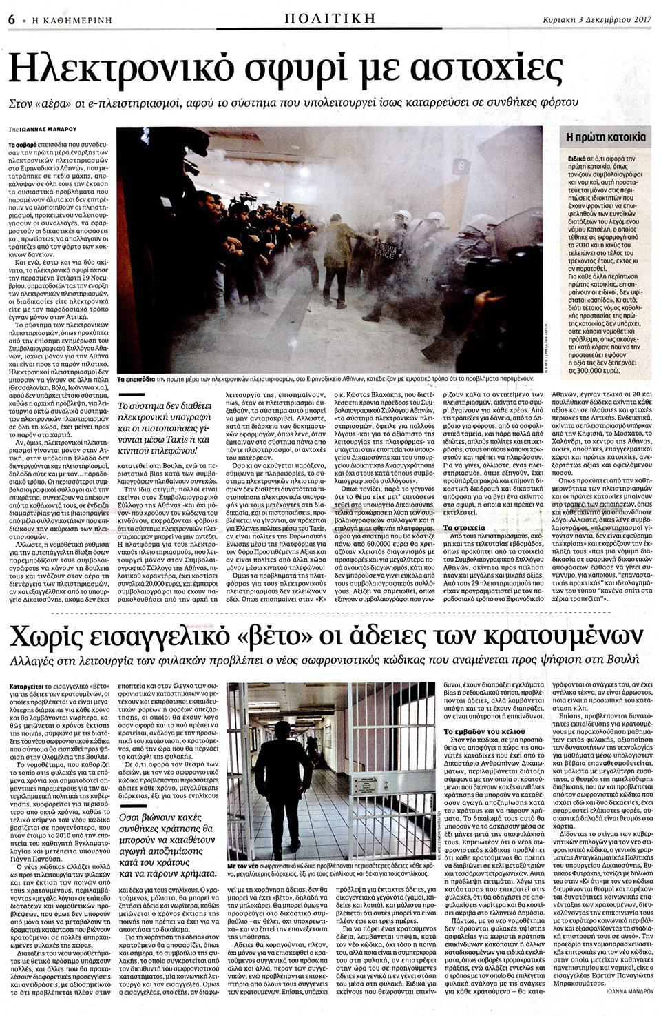 ΚΑΘΗΜΕΡΙΝΗ ΤΗΣ ΚΥΡΙΑΚΗΣ - 3 Δεκεμβρίου 2017