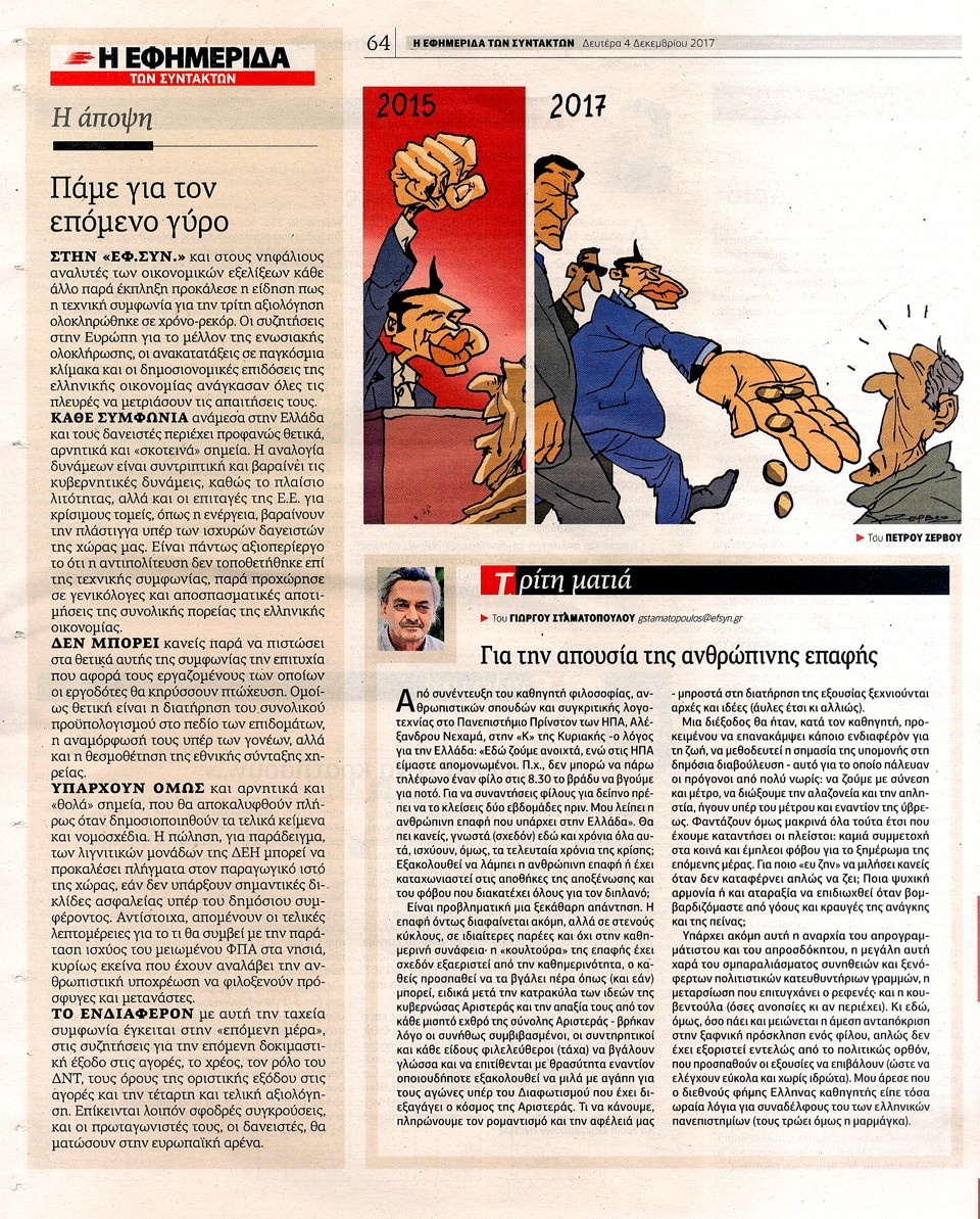 Η ΕΦΗΜΕΡΙΔΑ ΤΩΝ ΣΥΝΤΑΚΤΩΝ - 4 Δεκεμβρίου 2017