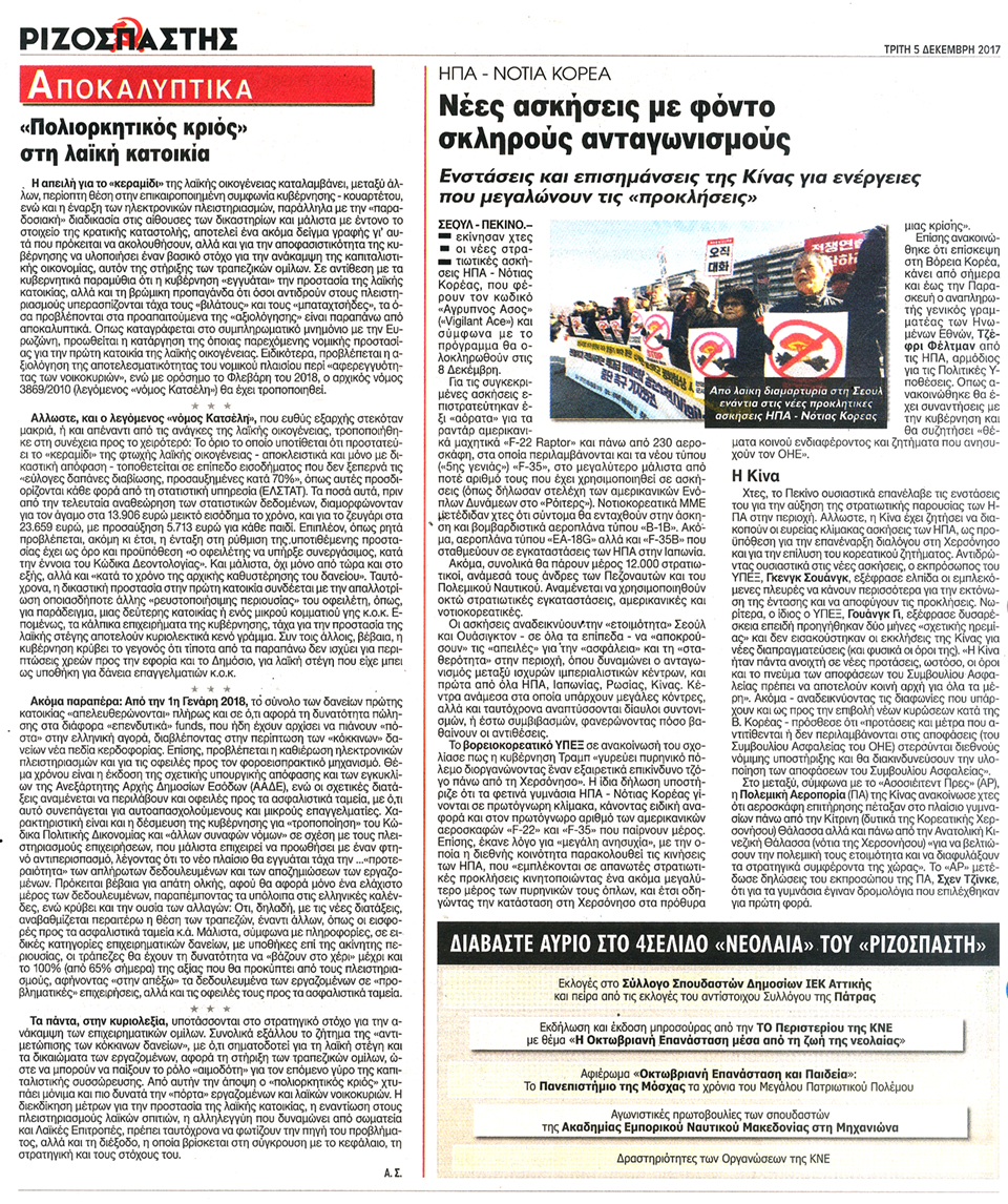 ΡΙΖΟΣΠΑΣΤΗΣ - 5 Δεκεμβρίου 2017