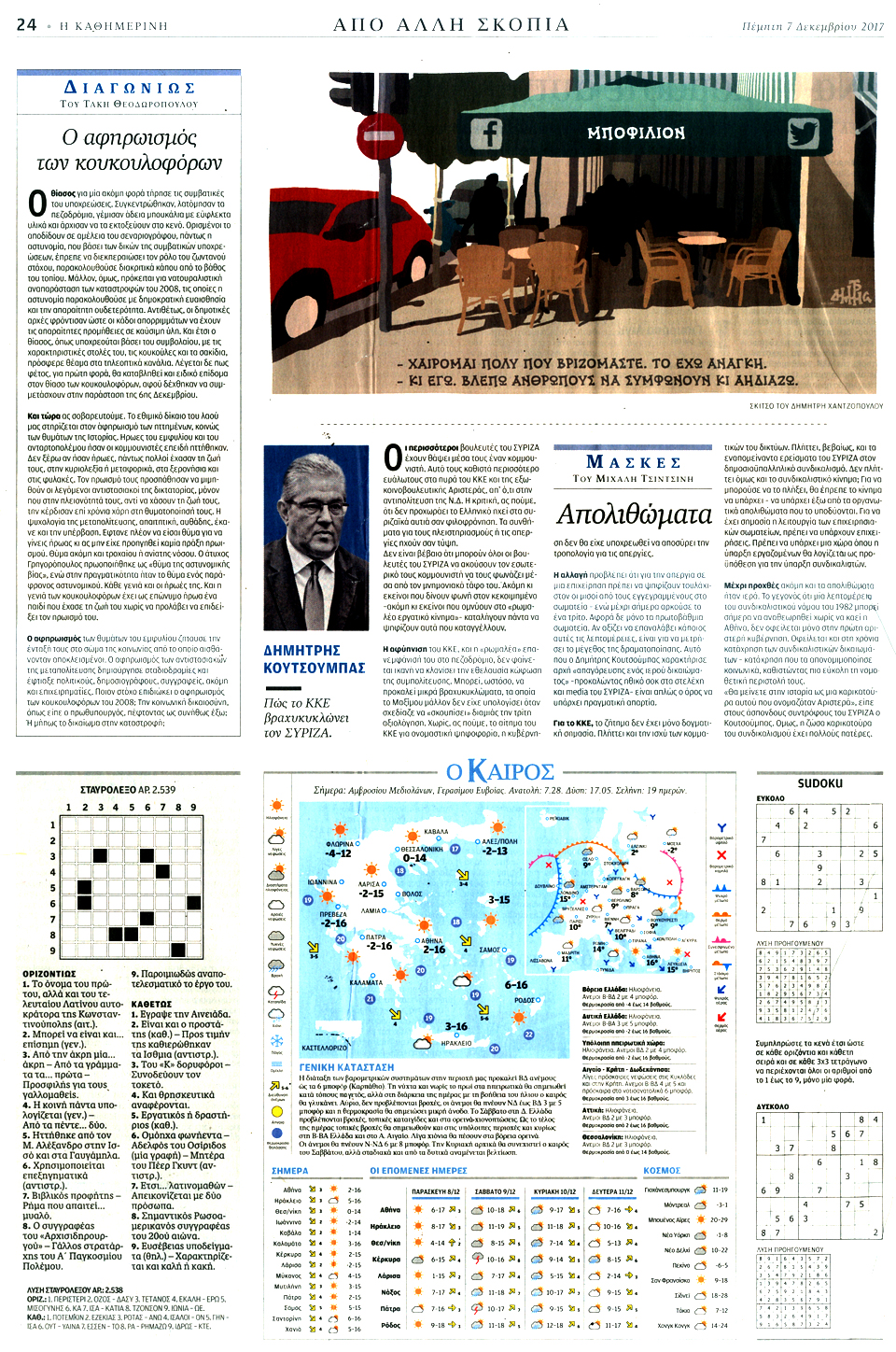 ΚΑΘΗΜΕΡΙΝΗ - 7 Δεκεμβρίου 2017