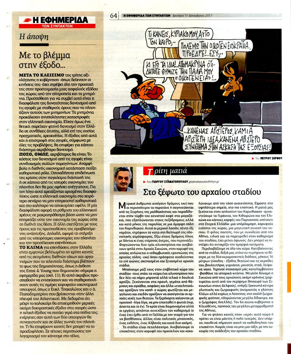 Η ΕΦΗΜΕΡΙΔΑ ΤΩΝ ΣΥΝΤΑΚΤΩΝ - 11 Δεκεμβρίου 2017