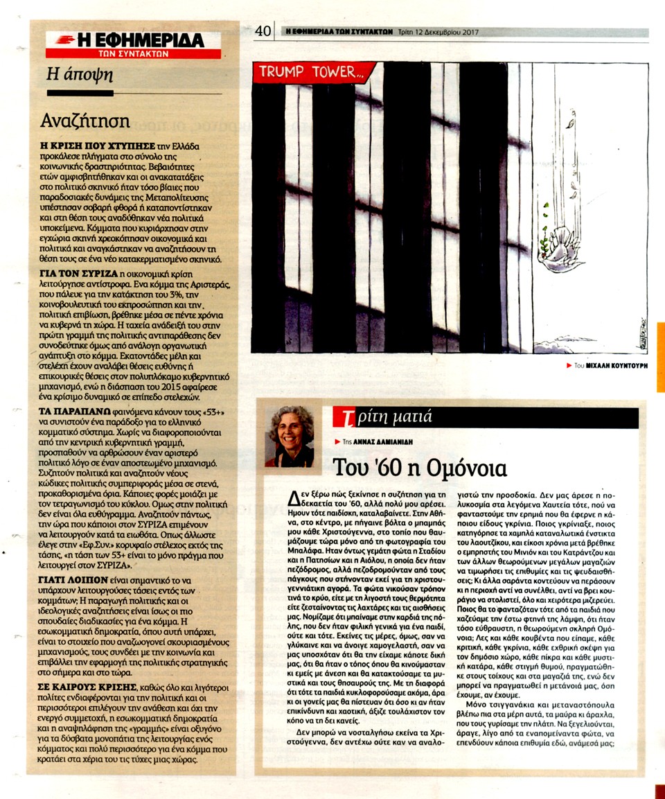 Η ΕΦΗΜΕΡΙΔΑ ΤΩΝ ΣΥΝΤΑΚΤΩΝ - 12 Δεκεμβρίου 2017