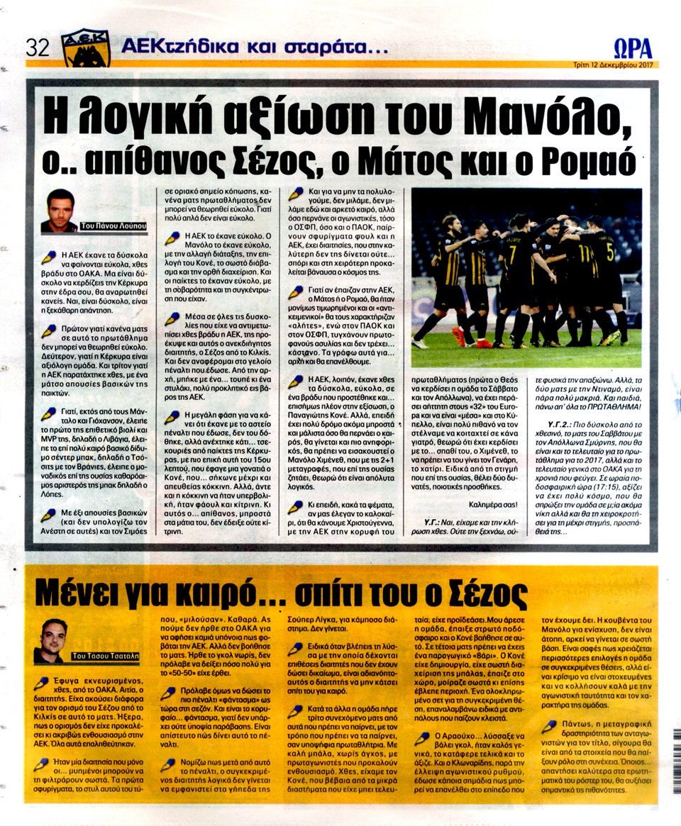 ΑΘΛΗΤΙΚΗ ΩΡΑ ΤΩΝ ΣΠΟΡ - 12 Δεκεμβρίου 2017
