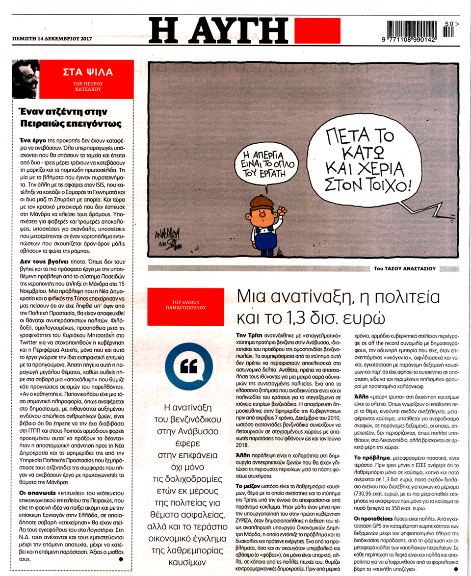 Η ΑΥΓΗ - 14 Δεκεμβρίου 2017