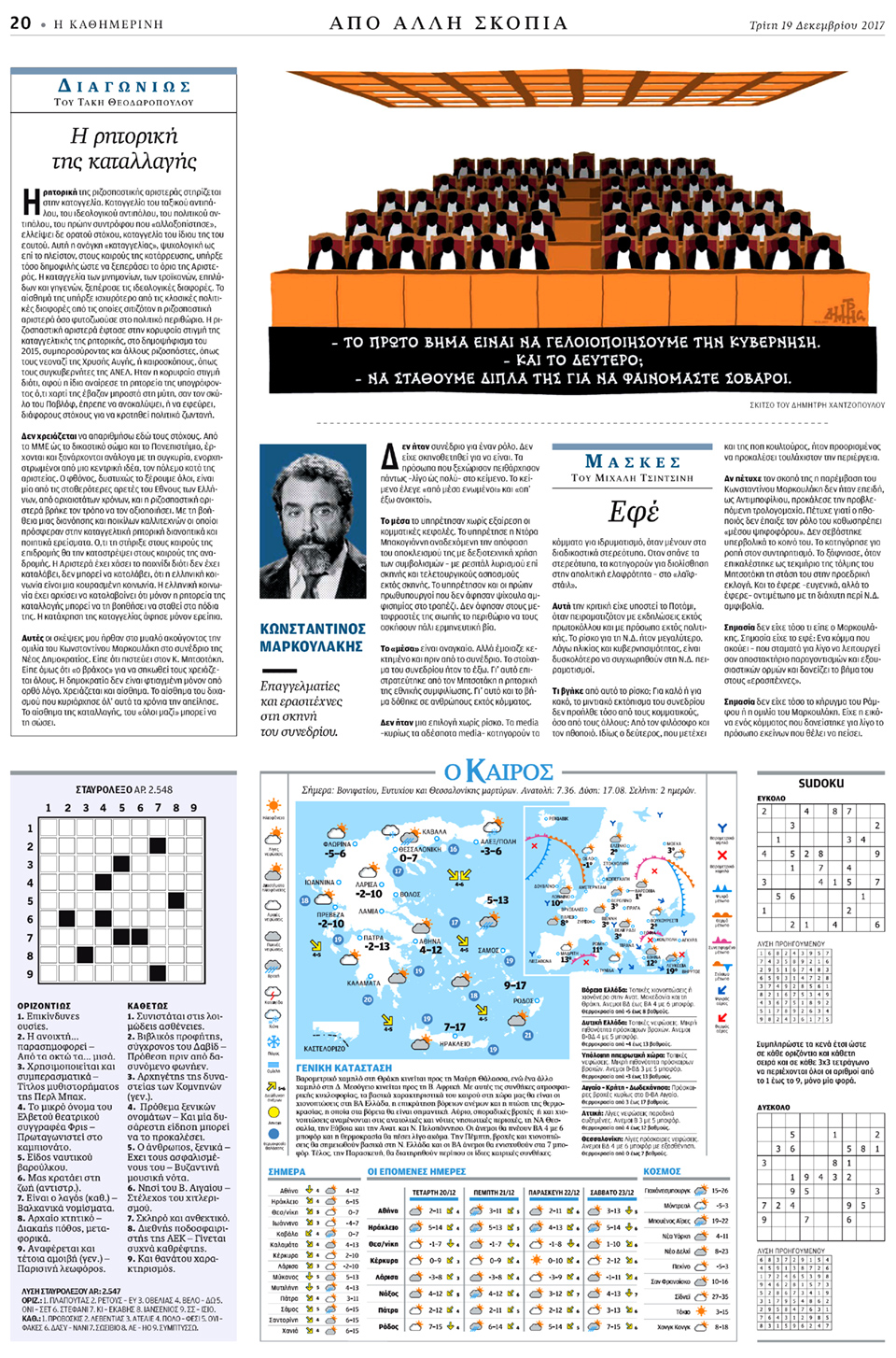 ΚΑΘΗΜΕΡΙΝΗ - 19 Δεκεμβρίου 2017