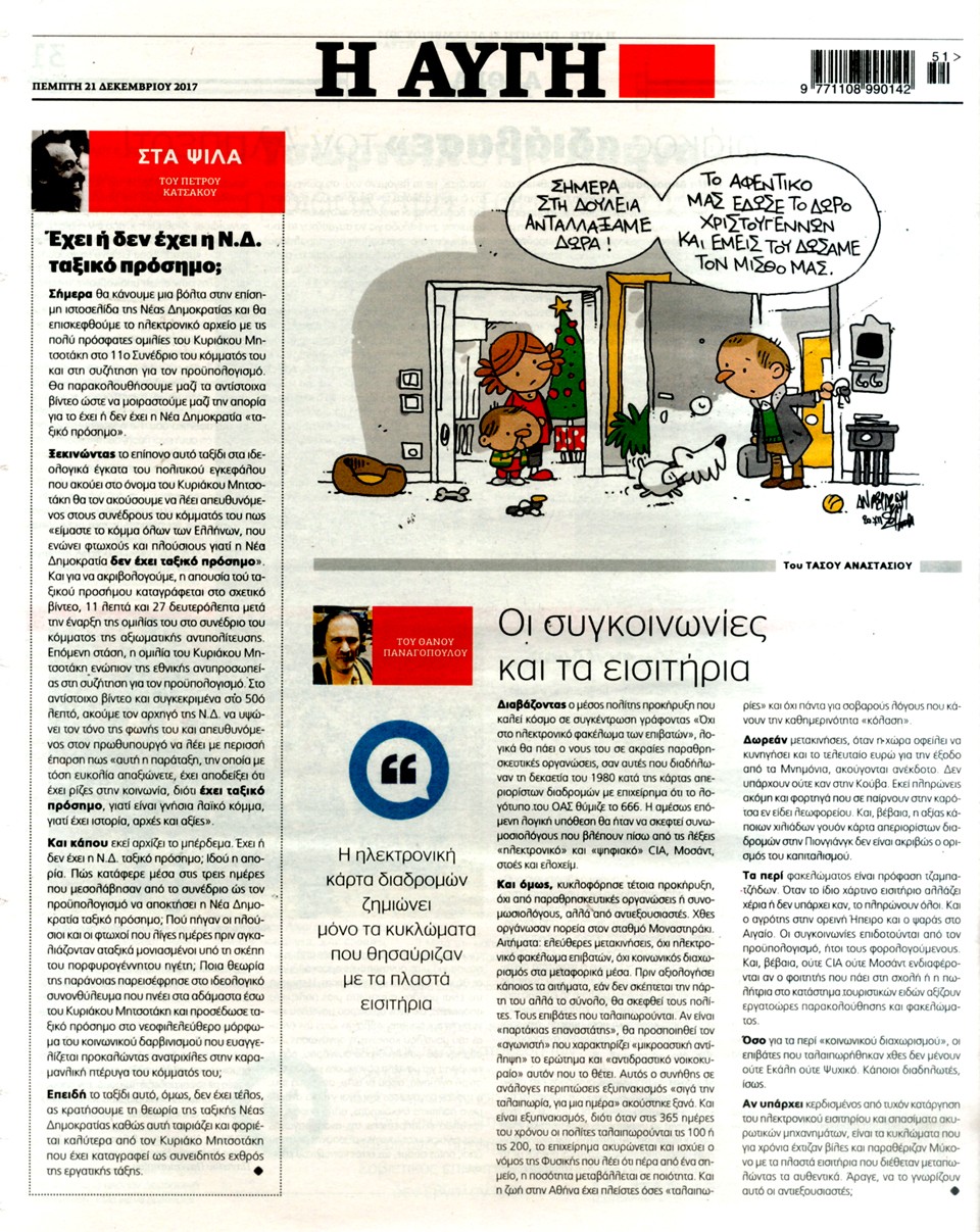 Η ΑΥΓΗ - 21 Δεκεμβρίου 2017
