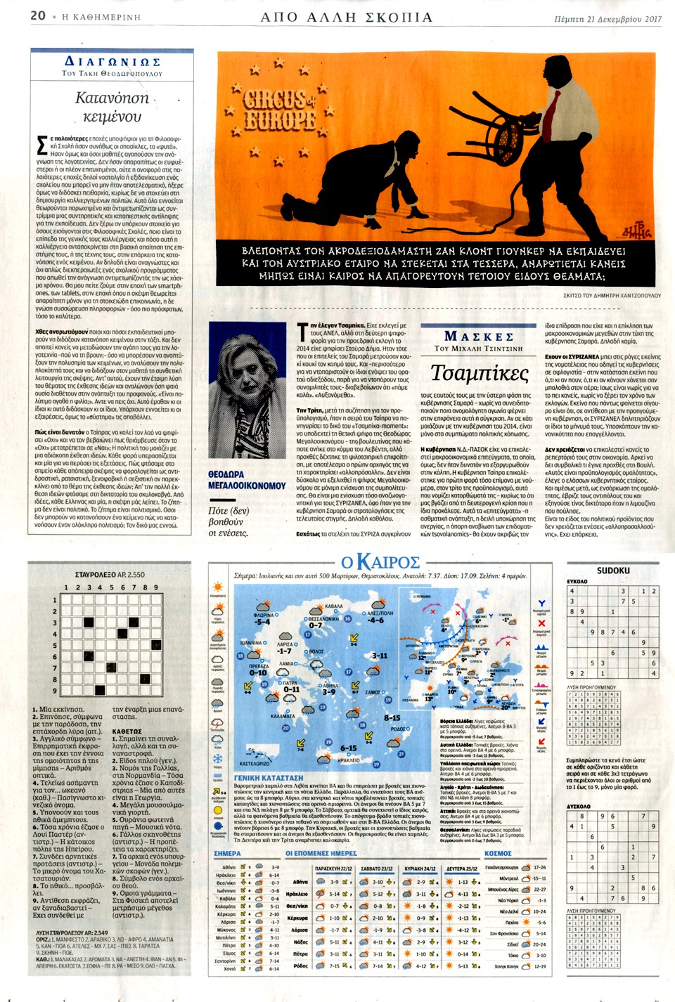 ΚΑΘΗΜΕΡΙΝΗ - 21 Δεκεμβρίου 2017