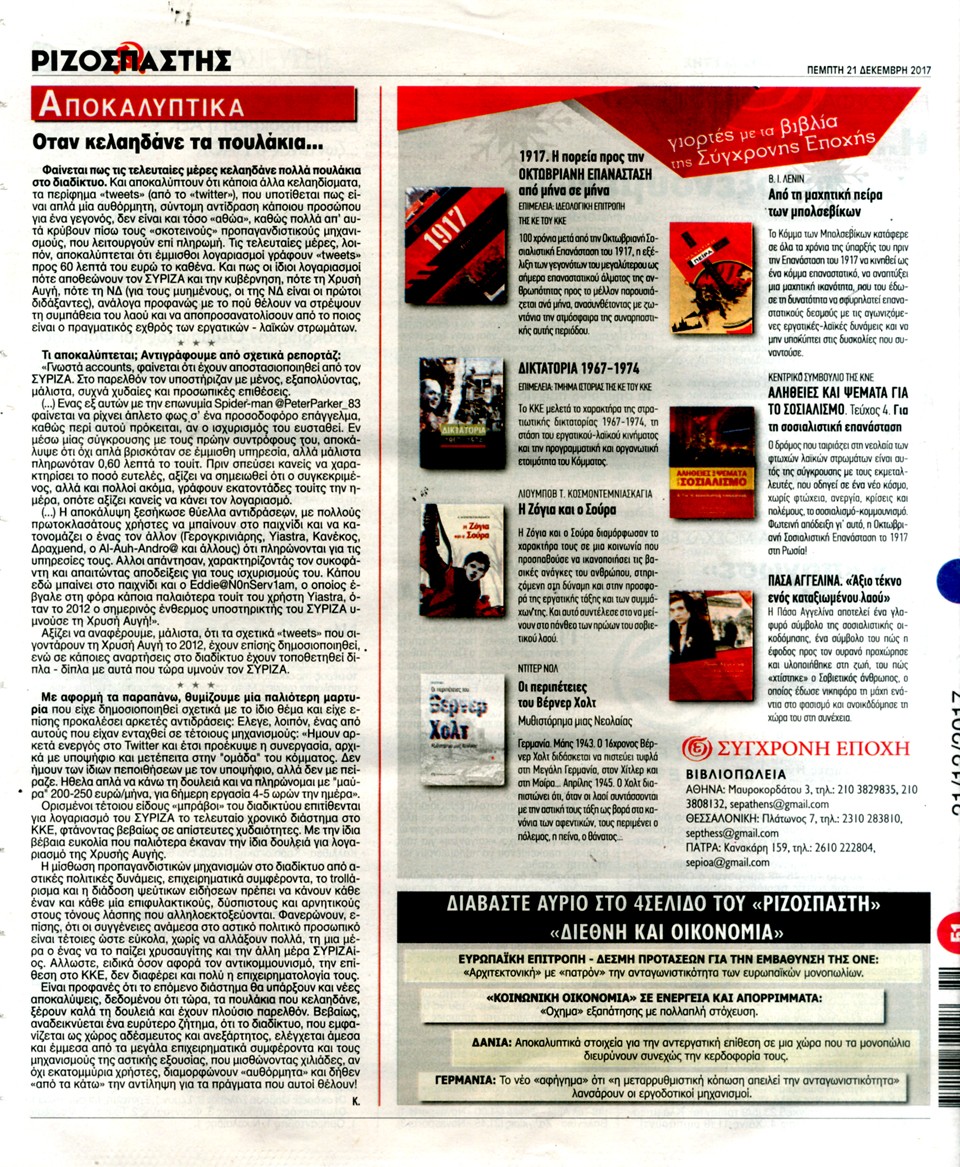 ΡΙΖΟΣΠΑΣΤΗΣ - 21 Δεκεμβρίου 2017