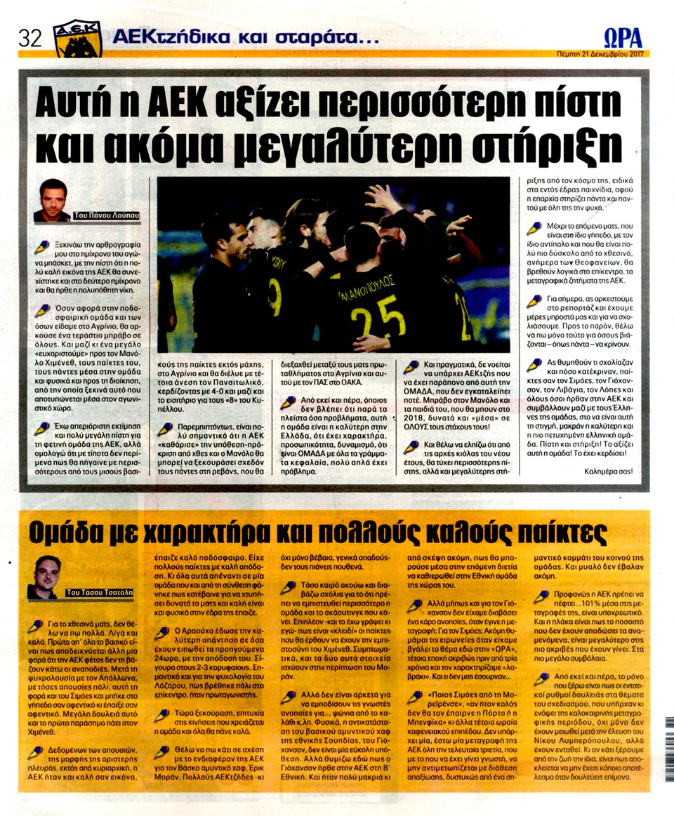 ΑΘΛΗΤΙΚΗ ΩΡΑ ΤΩΝ ΣΠΟΡ - 21 Δεκεμβρίου 2017