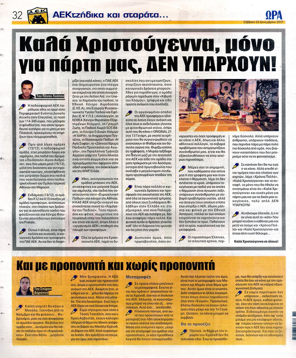 ΑΘΛΗΤΙΚΗ ΩΡΑ ΤΩΝ ΣΠΟΡ - 23 Δεκεμβρίου 2017