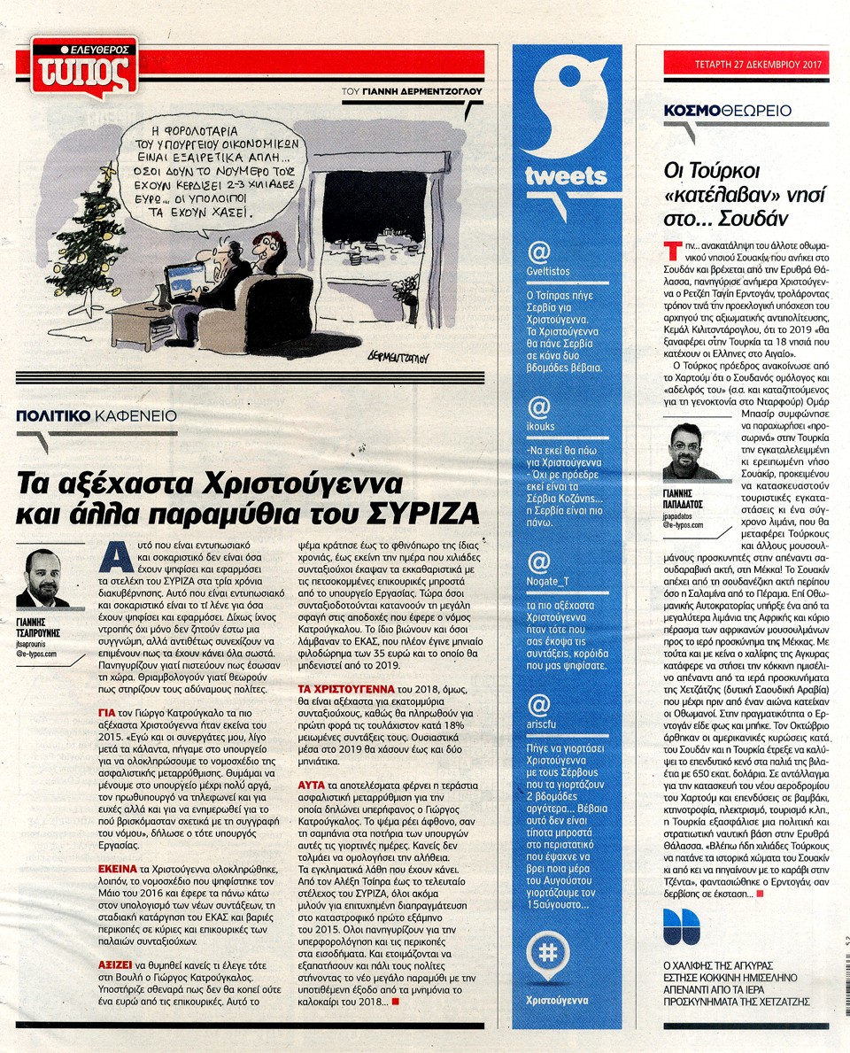 ΕΛΕΥΘΕΡΟΣ ΤΥΠΟΣ - 27 Δεκεμβρίου 2017