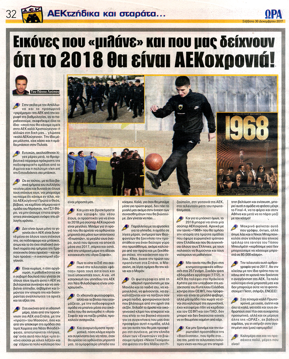 ΑΘΛΗΤΙΚΗ ΩΡΑ ΤΩΝ ΣΠΟΡ - 30 Δεκεμβρίου 2017