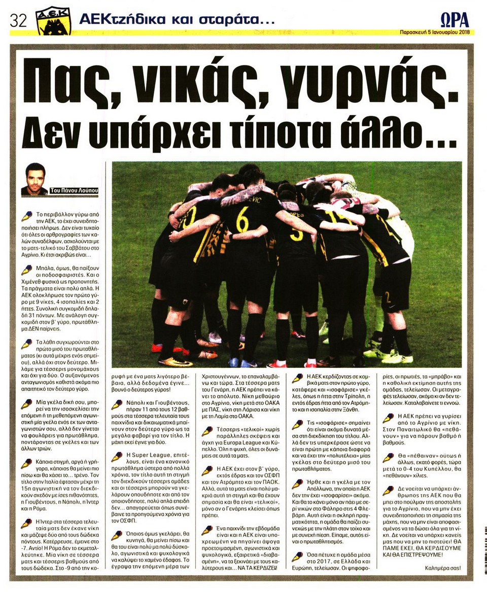 ΑΘΛΗΤΙΚΗ ΩΡΑ ΤΩΝ ΣΠΟΡ - 5 Ιανουαρίου 2018