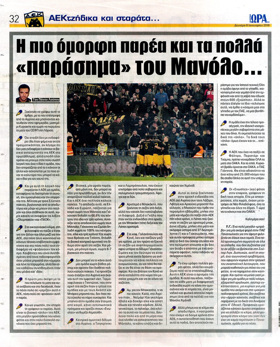 ΑΘΛΗΤΙΚΗ ΩΡΑ ΤΩΝ ΣΠΟΡ - 8 Ιανουαρίου 2018