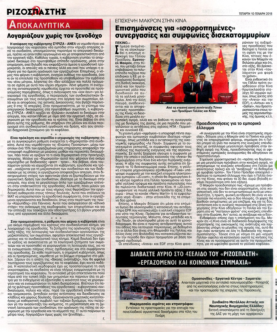 ΡΙΖΟΣΠΑΣΤΗΣ - 10 Ιανουαρίου 2018