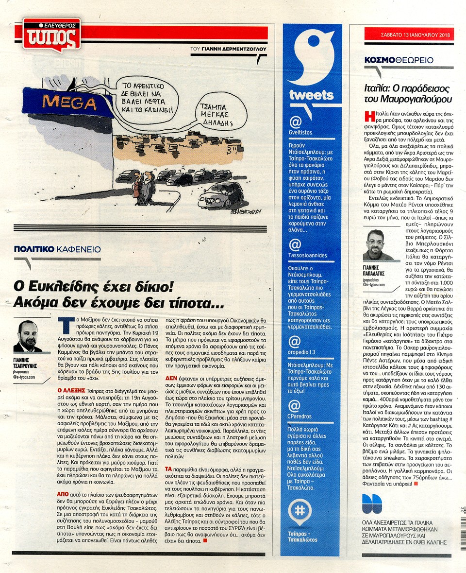 ΕΛΕΥΘΕΡΟΣ ΤΥΠΟΣ - 13 Ιανουαρίου 2018