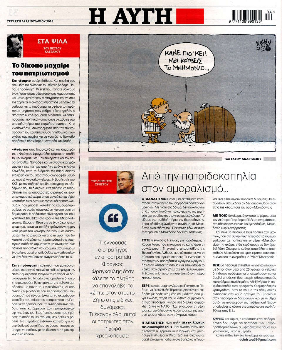 Η ΑΥΓΗ - 24 Ιανουαρίου 2018