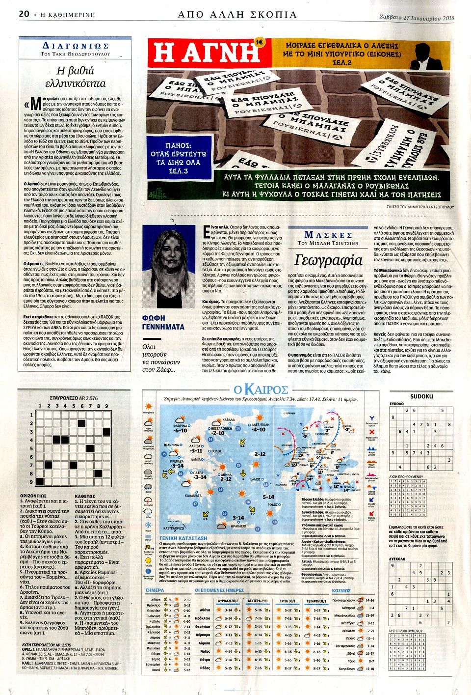 ΚΑΘΗΜΕΡΙΝΗ - 27 Ιανουαρίου 2018