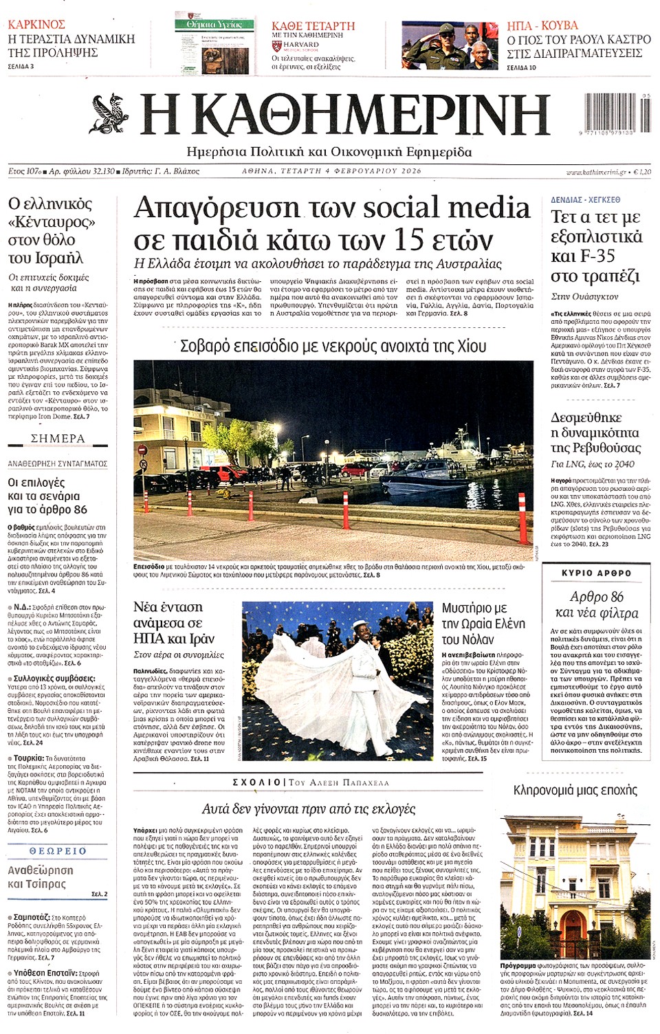 ΚΑΘΗΜΕΡΙΝΗ - 04 Φεβρουαρίου 2026