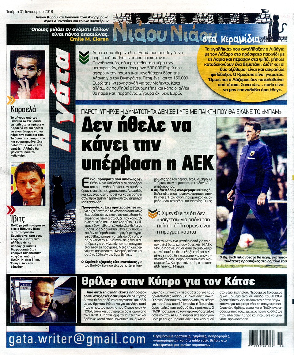 Η ΓΑΤΑ - 31 Ιανουαρίου 2018
