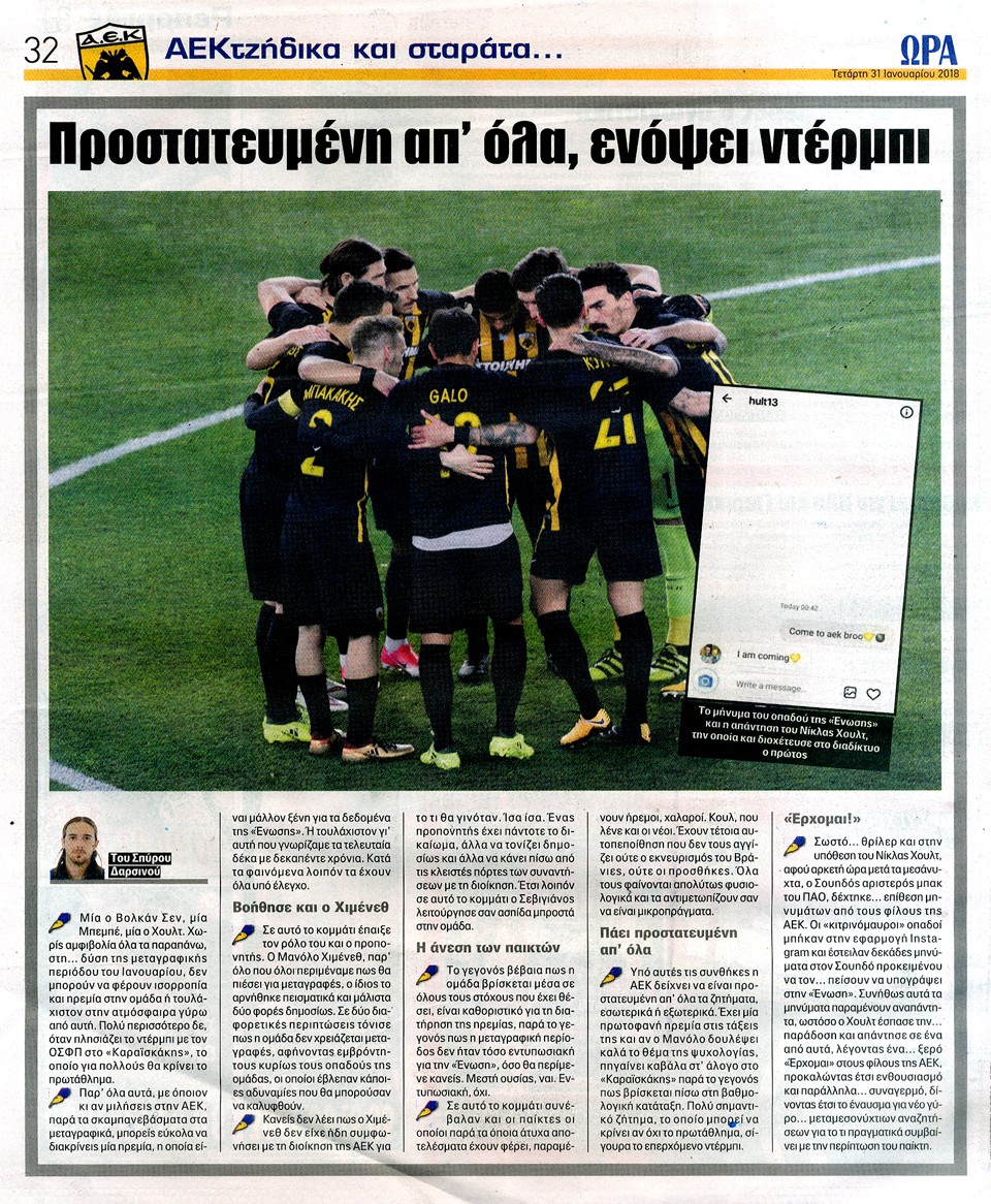 ΑΘΛΗΤΙΚΗ ΩΡΑ ΤΩΝ ΣΠΟΡ - 31 Ιανουαρίου 2018