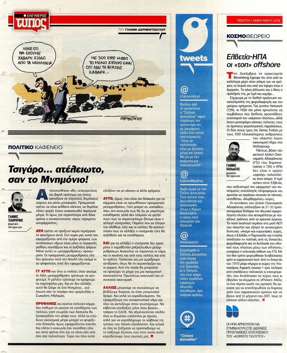 ΕΛΕΥΘΕΡΟΣ ΤΥΠΟΣ - 1 Φεβρουαρίου 2018