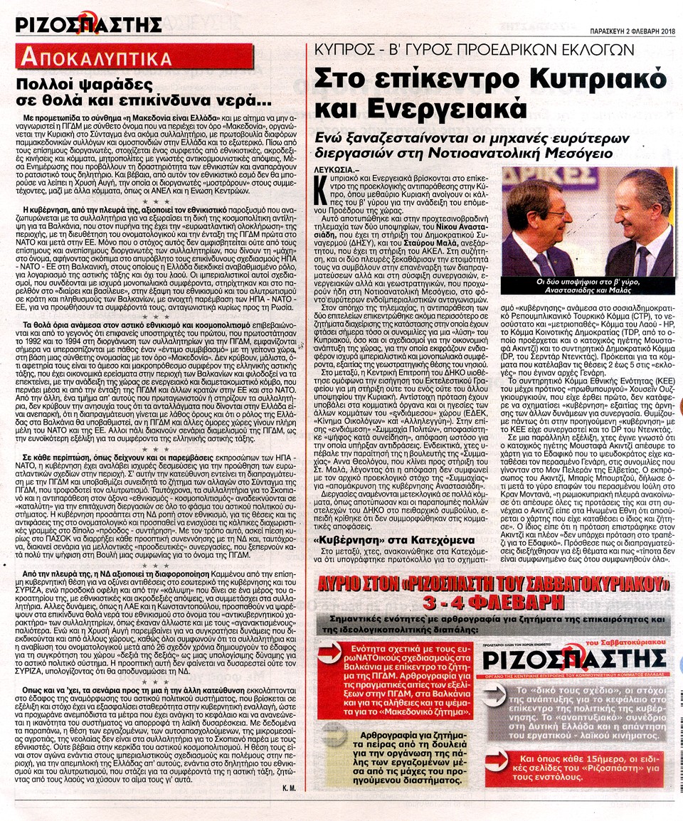 ΡΙΖΟΣΠΑΣΤΗΣ - 2 Φεβρουαρίου 2018