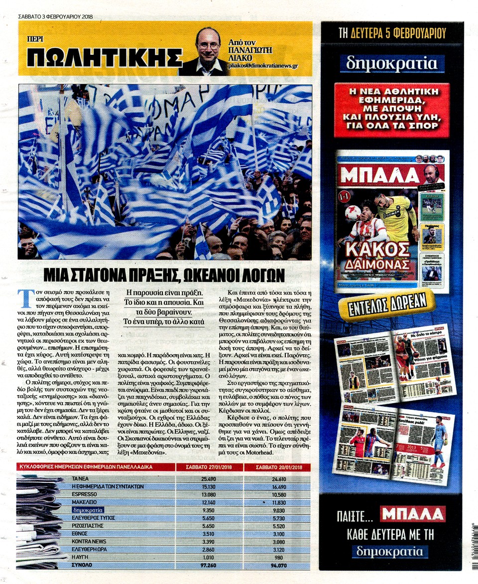 ΔΗΜΟΚΡΑΤΙΑ - 3 Φεβρουαρίου 2018
