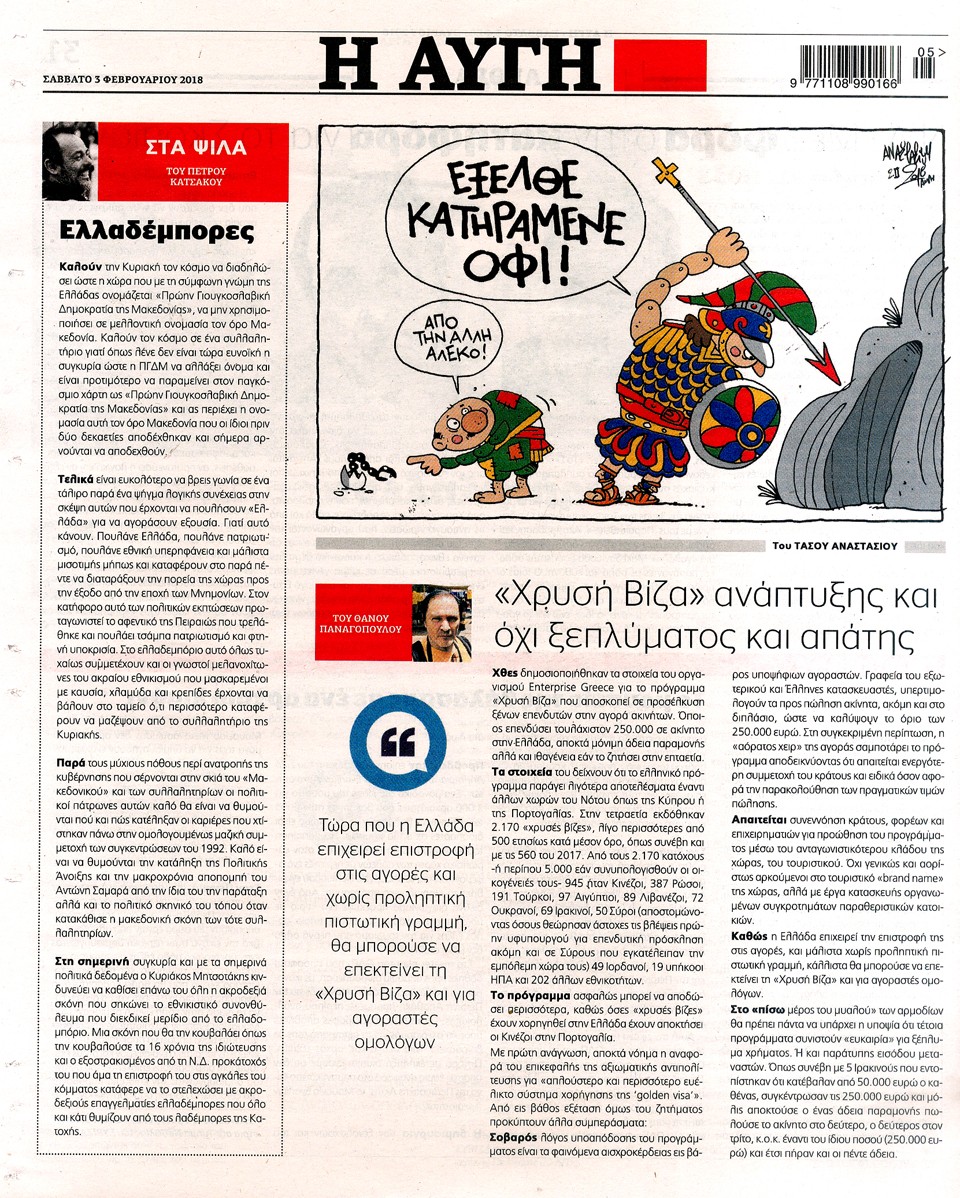Η ΑΥΓΗ - 3 Φεβρουαρίου 2018